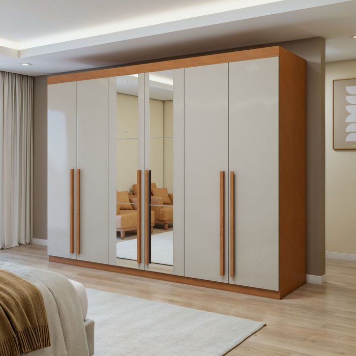 Guarda-roupa 6 Portas 4 Gavetas Bertha com Espelho Amêndoa Clean/Off White