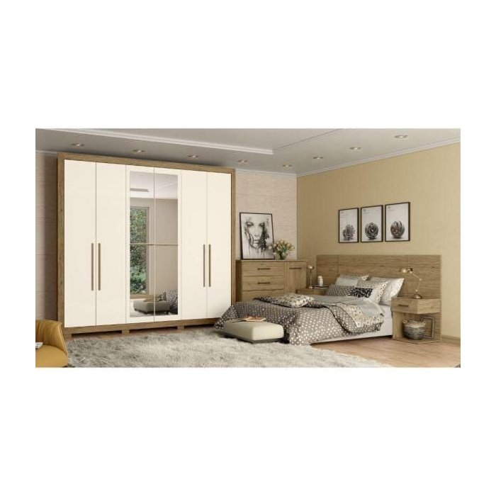 Guarda Roupa 6 Portas 4 Gavetas Garden Henn Rústico/Off White