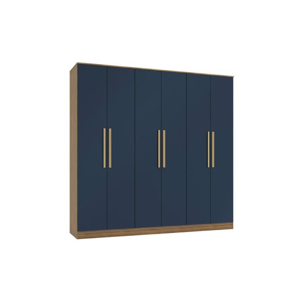 Guarda-roupa 6 Portas 4 Gavetas Kappesberg Adapt Nogueira/azul Profundo 237cm