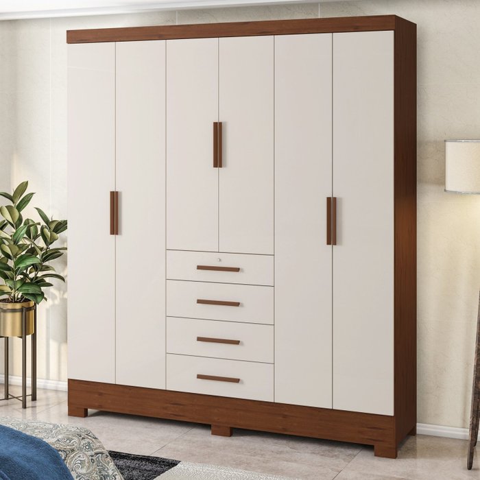 Guarda Roupa 6 Portas 4 Gavetas New Primordial Jacaranda/Off White