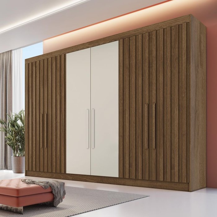 Guarda Roupa 6 Portas 4 Portas Ripadas Potente com Ripado 100% Mdf Brauna Off White - Móveis Europa