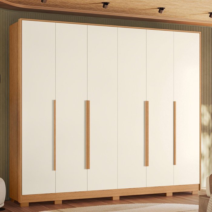 Guarda-roupa 6 Portas 6 Gavetas Fascínio Freijó / Off White