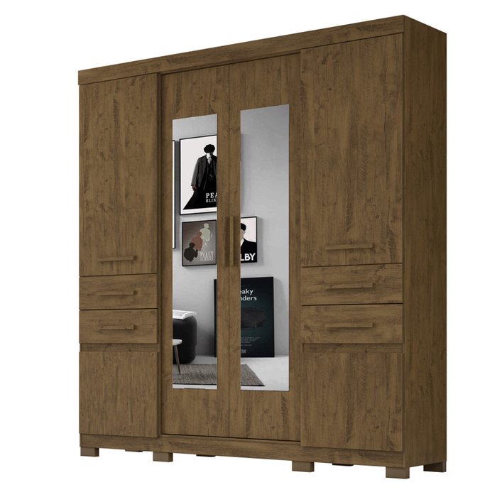 Guarda Roupa 6 Portas com Espelho Aracaju Castanho Wood 906331 Moval