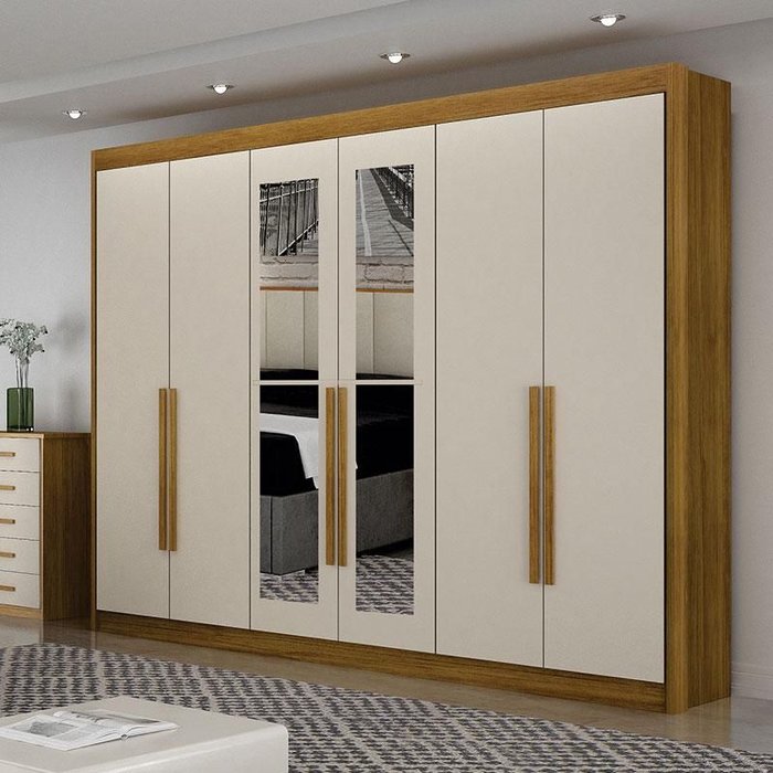 Guarda Roupa 6 Portas Diamante Gold com Espelho Freijó Off White – Leifer Móveis