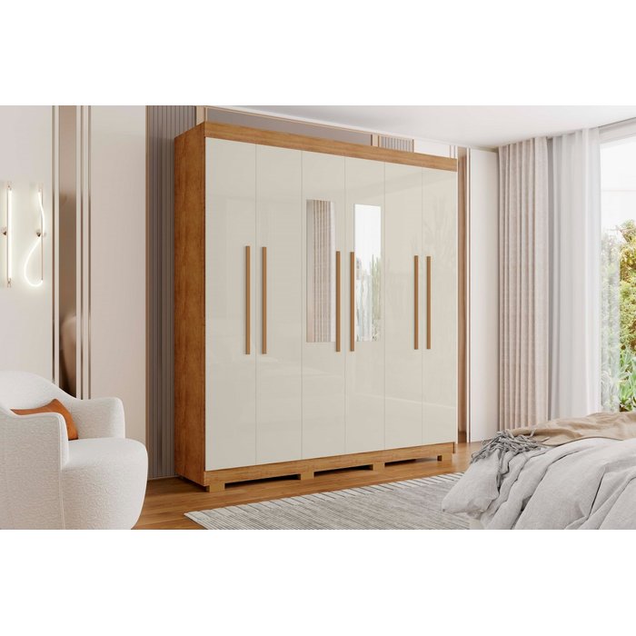 Guarda Roupa 6 Portas e 4 Gavetas Porto Bello com Espelho Cedro Areia - Rud Rack