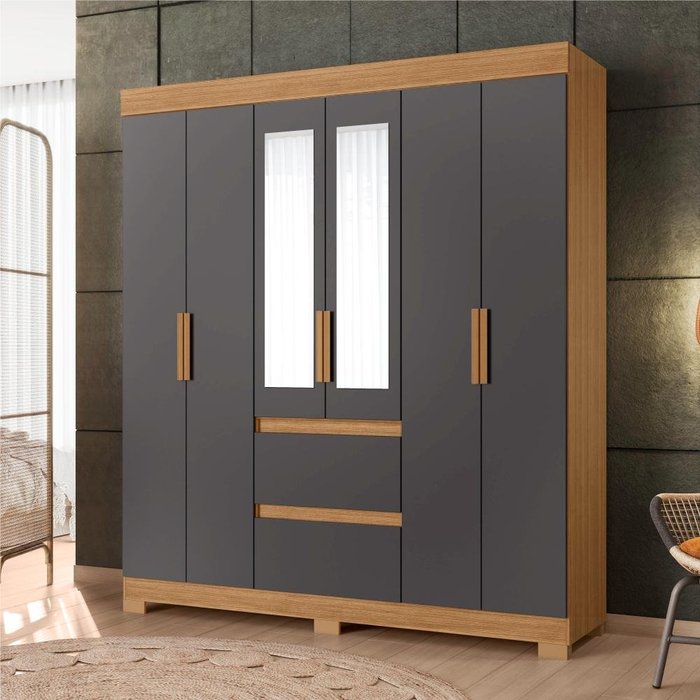 Guarda Roupa 6P com Espelho Alpha Nature Titanium