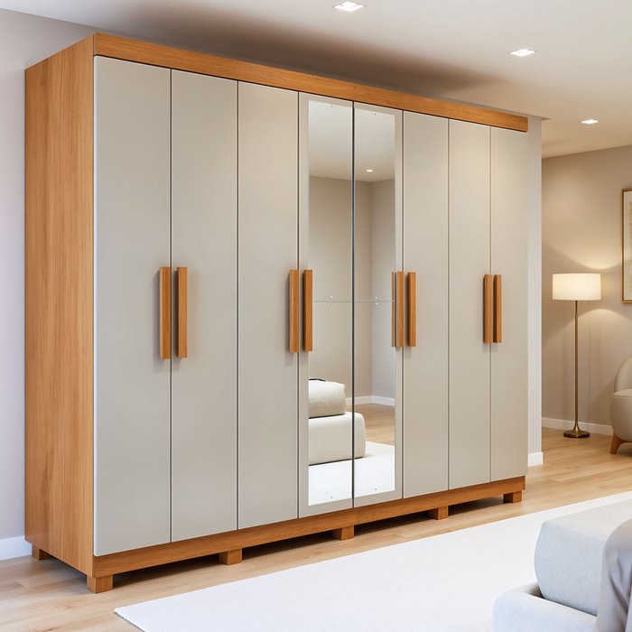 Guarda-roupa 8 Portas 4 Gavetas com Espelho e com Pé Andara Soft