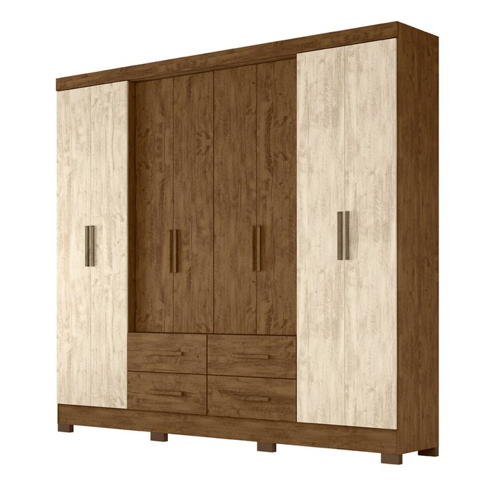 Guarda-Roupa 8 Portas San Lorenzo Plus Linha Crystal 941381 Castanho Wood Avelã Wood Moval