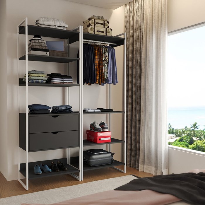 Com o Guarda-Roupa Industrial será muito fácil manter a organização de suas roupas. Por ter a característica de closet, ele deixa quase todas as peças à mostra e oferece espaço para as suas vestimentas e acessórios que precisam ficar pendurados, contando também com alguns compartimentos em gaveta. Com ele, a organização, beleza e bom gosto são garantidos em seu lar.