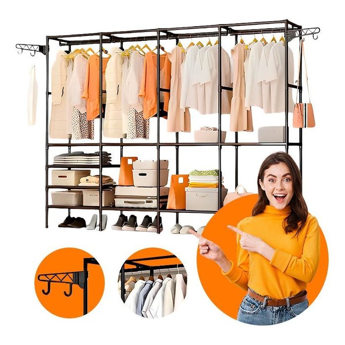 Guarda Roupa Aberto Metal Forte Portátil Organizador com 4 Colunas - Closet Moderno