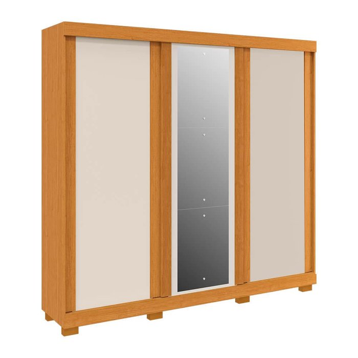 Guarda Roupa Acp Zara 3 Portas com Espelho e Pés - Cinamomo/off White