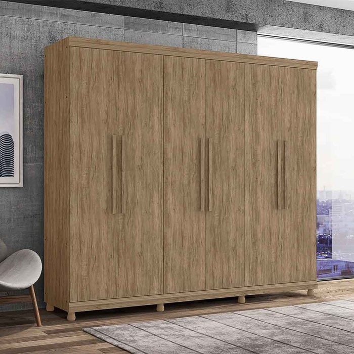 Guarda Roupa Antares 100% MDF 6 Portas 5 Gavetas com Pés - Lanza:Carvalho