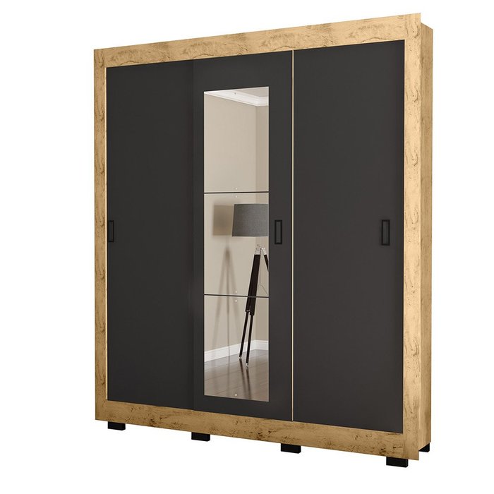 Guarda Roupa Araplac 3 Portas com Espelho Freijo/Carbono