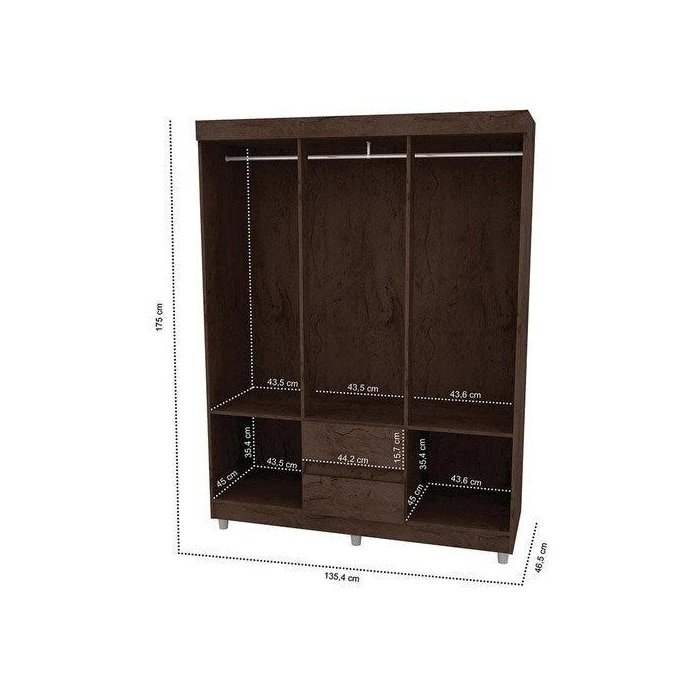 Geralmente, este tipo de guarda-roupa apresenta 2 ou 3 portas e tem menos divisões no espaço interno.
