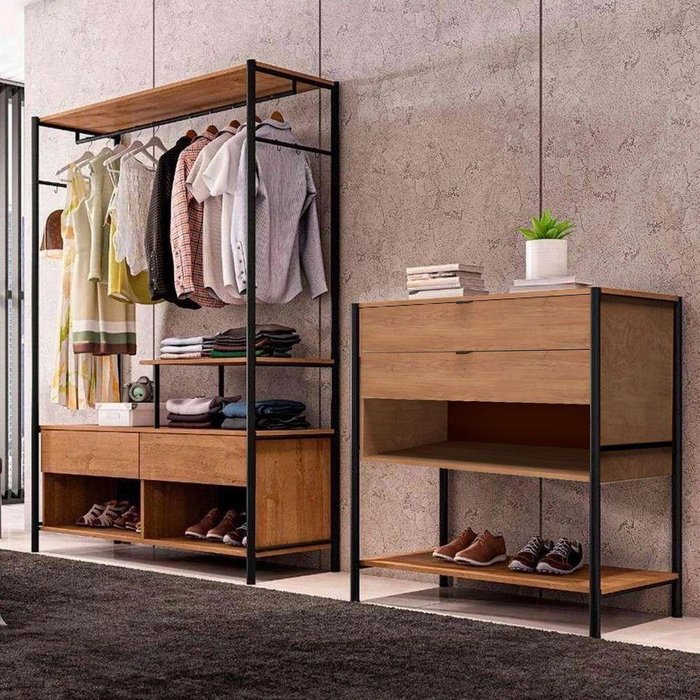 Chegou o momento de montar o seu Closet e você procura por móveis que sejam praticos e expressem todo seu bom gosto em sua Decoração não é mesmo? Para te ajudar apresentamos o Kit ideal para cumprir todas as suas necessidades pois são produtos que seguem a tendência dos tubulares o que agrega muito na praticidade de seu Quarto ou Closet. Produzidos com matérias primas de extrema qualidade contam com estrutura em aço de carbono firmes e resistentes, madeira de MDP/BP e acabamento em pintura Microtexturizada. Ambos nas cores Demolição / Preto Fosco, que combinam com diversos tipos de Decorações e Ambientes. Aproveite os benefícios que o Guarda Roupa Barcelona e a Comoda Avila trazem para seu Quarto e Closet. Vamos as especificações Técnicas Guarda Roupa Closet Barcelona - Demolição / Preto FoscoEscala de brilho: Fosco