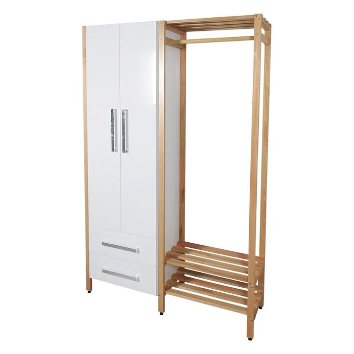 ESTANTE ARARA EM MADEIRA DE EUCALIPTO COM SAPATEIRA, ARMÁRIO E GAVETAS - TABIT - Estante arara com estrutura em madeira maciça reflorestada;- Gaveta com corrediça telescópica, abertura suave e total da gaveta;- Armário com prateleira interna para organização;- armário e gavetas em MDP 15MM com pintura UV;- Compra direto de fábrica;- Perfeita para organizar e otimizar espaços;- Ideal para quartos, lavanderias, closets e para espaços comerciais- Leve e de fácil montagem;- Tutorial em vídeo da montagem no YouTube. ESPECIFICAÇÕES:Estante Arara em madeira de Eucalipto com sapateira, armário e gavetas. DIMENSÕES:Altura 181,3 cmLargura 121,9 cmProfundidade 33,8 cmPESO DO MÓVEL – 41KG ITENS INCLUSOS:UMA ESTANTE ARARA EM MADEIRA DE EUCALIPTO TABIT (itens decorativos não inclusos).