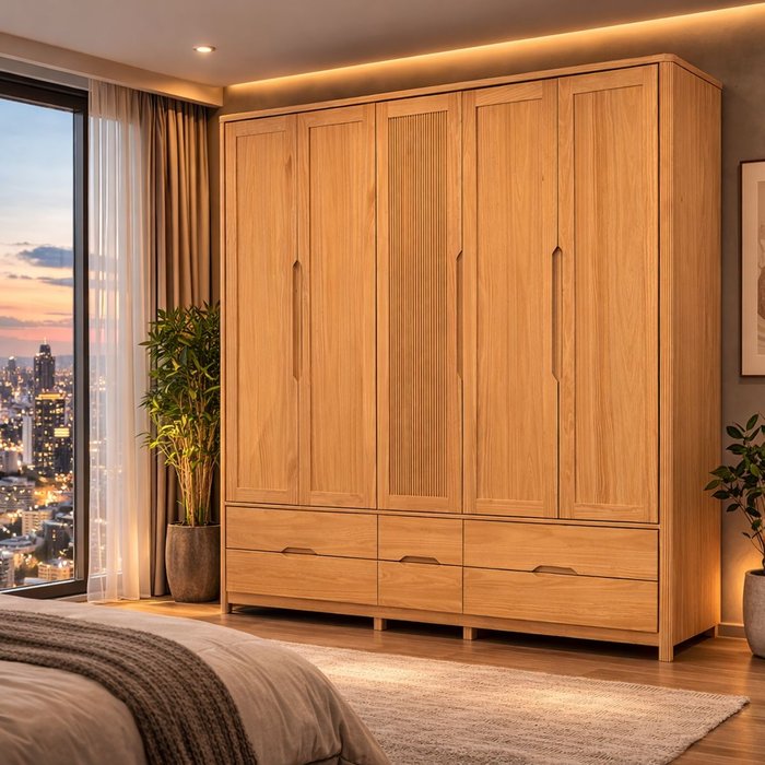 Guarda Roupa Armário 5 Portas Madeira Maciça Natural Marrom