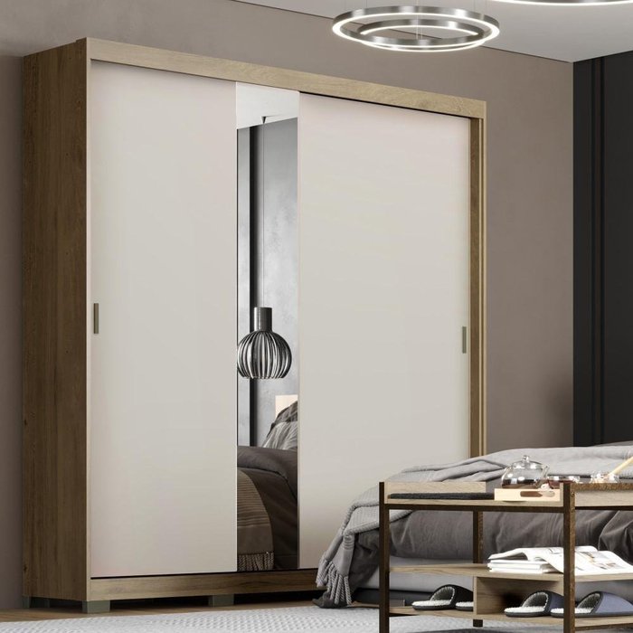 O Roupeiro City tem estilo despojado e moderno, possibilitando que se encaixe em diveros tipos de dormitórios. Sua duas portas de correr, que também são reversíveis, deixam a facilidade de combinação ainda maior. Possui diversos diferenciais, entre eles: seu amplo espelho parafusado, pés na cor do produto e perfil de aço para evitar empenamento nas portas. No interior, puro conforto, grande quantidade de prateleiras, cabideiros de alumínio, colmeia e espaço para roupas longas. Especificações - Comprimento: 200 cm - Largura: 52 cm - Altura: 224 cm - Portas reversíveis - 2 Portas - 1 Espelho - 3 Gavetas - 4 Prateleiras - 2 Cabideiros - Cor: Noce/Off White - As configurações do seu monitor ou dispositivo móvel podem afetar a tonalidade da cor do produto. Conferir na descrição. - Recomendação de Limpeza: Limpar com pano seco para retirar o pó. Não aplicar produtos abrasivos. - Produtos de Enfeite e Eletrônicos Não Estão Inclusos.