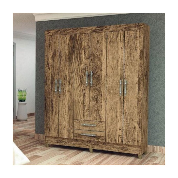 Guarda-Roupa Atlantic 6 Portas 2 Gavetas Vila Rica Castanho Rústico