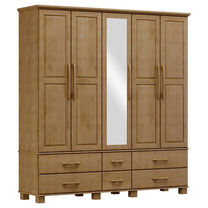 Guarda-roupa Bipartido 5 Portas 6 Gavetas Ouro Freijó Madeira Pinus - Finestra