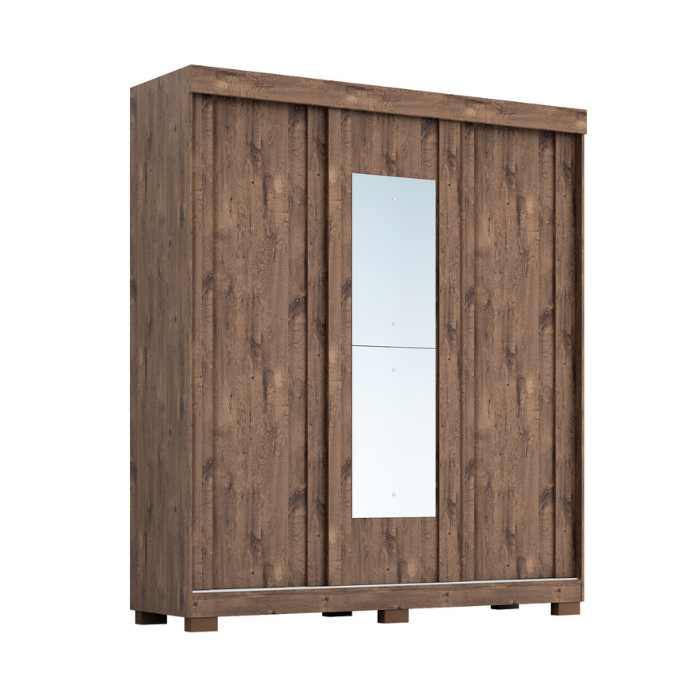 Guarda Roupa Com Espelho Samira 03 Portas Café ACP Móveis 100% MDF