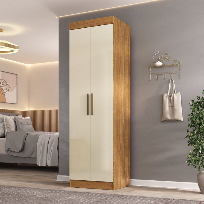 Guarda-roupa Canto Reto 2 Portas Paris Cinamomo/Off White