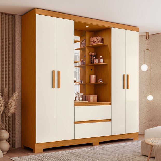 Guarda Roupa Capelinha Casal 04 Portas Olímpia Cinamomo/Off White