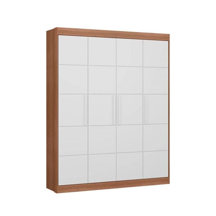 Guarda-Roupa Carol com 4 Portas 100% MDF Laca Carvalho Avelã / Branco Premium