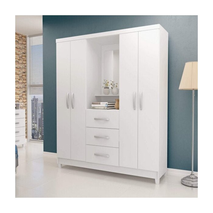 Guarda-Roupa Casal 1 Espelho e Penteadeira 4 Portas 3 Gavetas Ilhéus Espresso Móveis Branco