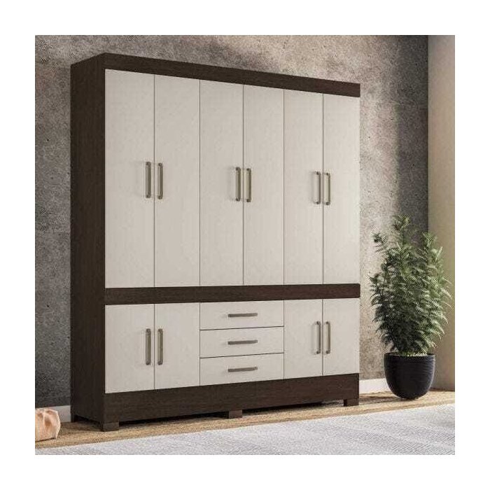Guarda Roupa Casal 10 Portas New Murano 83530 Ébano Touch / Off White Demóbile Ébano/Off White