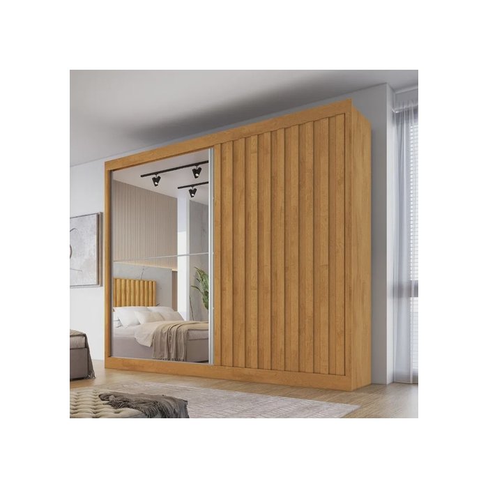 1 Guarda Roupa Casal Ripado com Espelho 2 Portas 4 Gavetas - Atlanta - Made Marcs