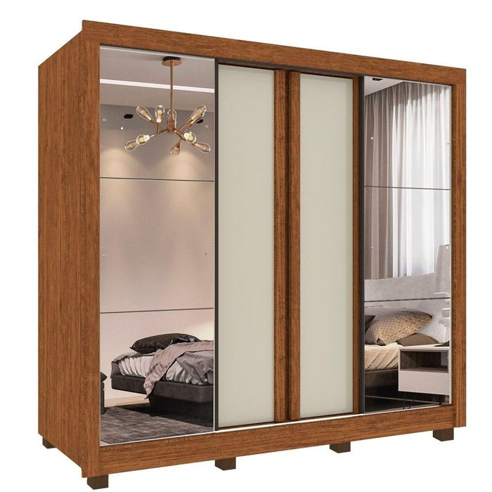 Guarda-Roupa Casal 100% Mdf 4 Portas Com Espelho 6 Gavetas Portinari Prime Imop Cinamomo/Off-White