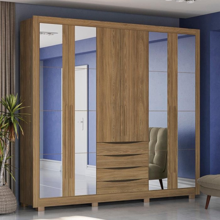 Guarda-roupa Casal 100% Mdf Kappesberg 16 Espelhos 6 Portas 4 Gavetas Nogueira