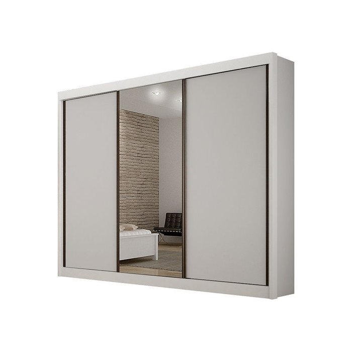 Guarda Roupa Casal 100% Mdf São Paulo Gold 03 Portas com 01 Porta Espelho 06 Gavetas Leifer Branco Neve