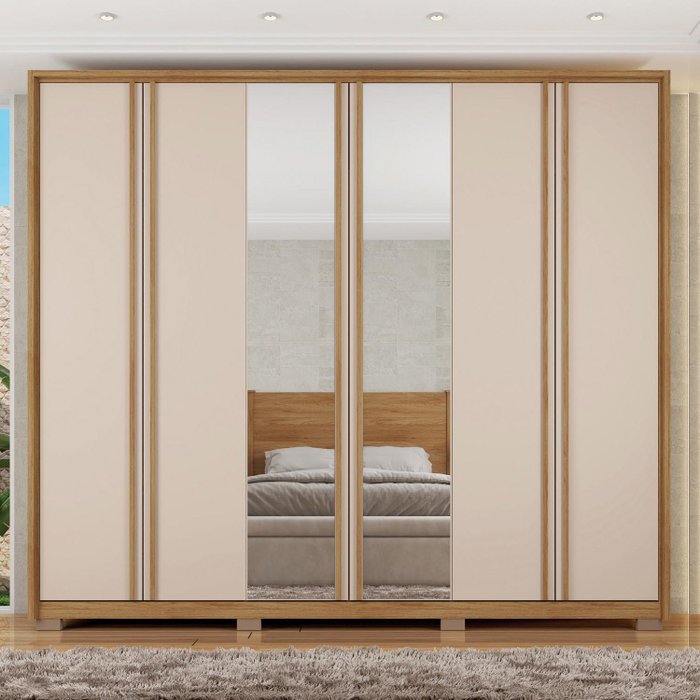 Guarda Roupa Casal 2.7 com Espelho 6 Portas 4 Gavetas Suburban Buriti/Off White