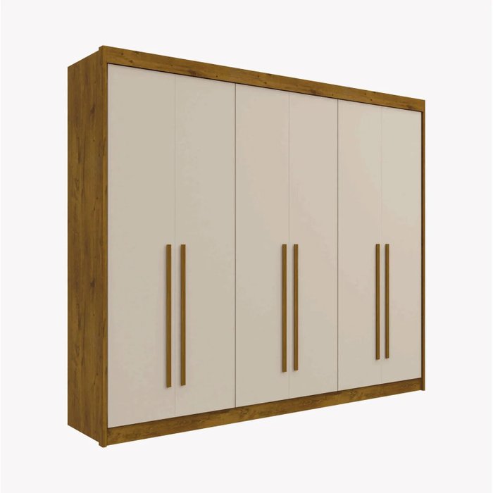 Guarda-Roupa Casal 2,76M 6 Portas 6 Gavetas Braga Leifer Móveis Canela/Off-White Cestaplus