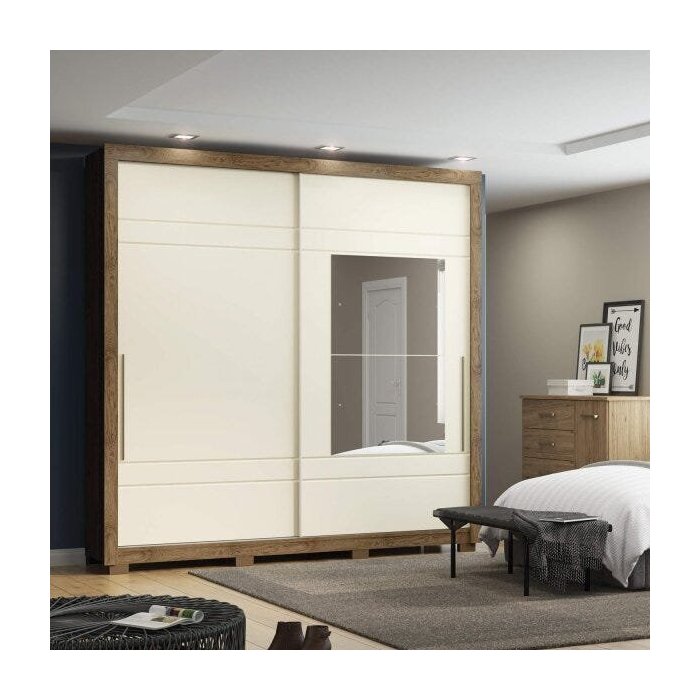 Guarda-Roupa Casal 2 Espelhos 2 Portas de Correr Delicato Henn Rústico/Off White