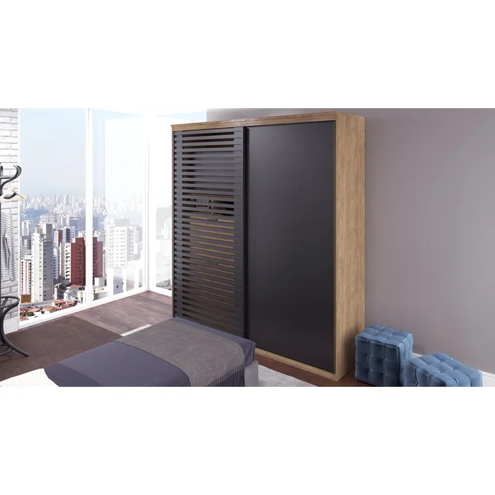 Guarda-Roupa Casal 2 Portas 5 Gavetas Autes Álamo/Preto