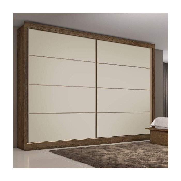 O Guarda-Roupa Casal, possui 2 portas de correr de simples abertura com trilho inferior de alumínio e roldana regulável com mola anti-descarrilhamento. As porta possuem perfil e puxador na cor bronze. Sistema flex color: Amêndoa/Off White/Amêndoa - Amêndoa/Turquesa/Bordô - Braúna/Off White/Braúna.