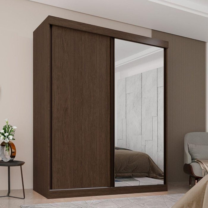 Guarda Roupa Casal 2 Portas de Correr 3 Gavetas Portugal com Espelho - Mais Móveis Cor New Canion/
