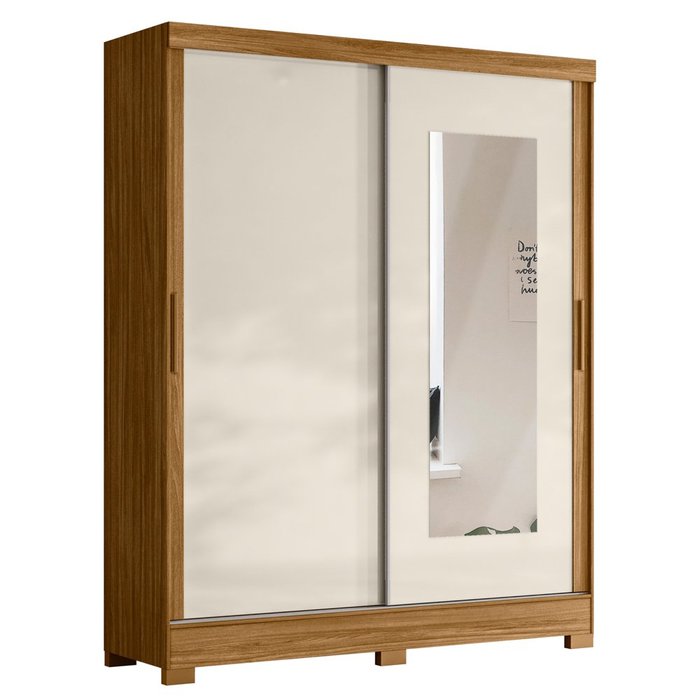 Se você está procurando um guarda roupa casal pequeno, sem abrir mão da funcionalidade e beleza, então, acaba de encontrar! O Guarda Roupa Casal 2 Portas de Correr com Espelho 170cm Egito M07 Freijó/Off White, da Mpozenato, é a opção certa para você que precisa otimizar espaço no quarto de casal pequeno. Vem conferir!