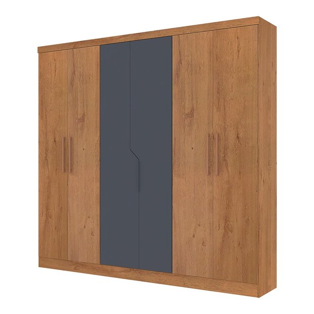 Guarda Roupa Casal 236 x 230 Cm 6 Portas 4 Gavetas Chicago MDP Canelato Grafite - ClickLar