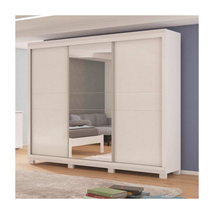 Guarda-Roupa Casal 3 Espelhos 3 Portas de Correr Campinas Móveis Rimo Branco