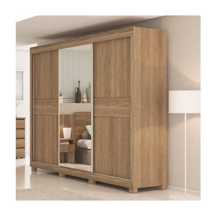 Guarda-Roupa Casal 3 Espelhos 3 Portas de Correr Campinas Móveis Rimo Freijó