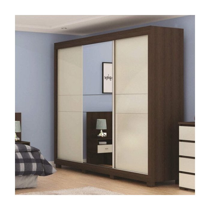 Guarda-Roupa Casal 3 Espelhos 3 Portas de Correr Campinas Móveis Rimo Tauari/Off White