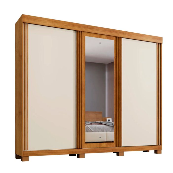 Guarda Roupa Casal 3 Portas 6 Gavetas Siena Benetil Cinamomo/off White