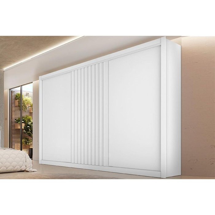 Guarda Roupa Casal 3 Portas de Correr 1 Ripada e 6 Gavetas Vitória Branco Acetinado - Europa