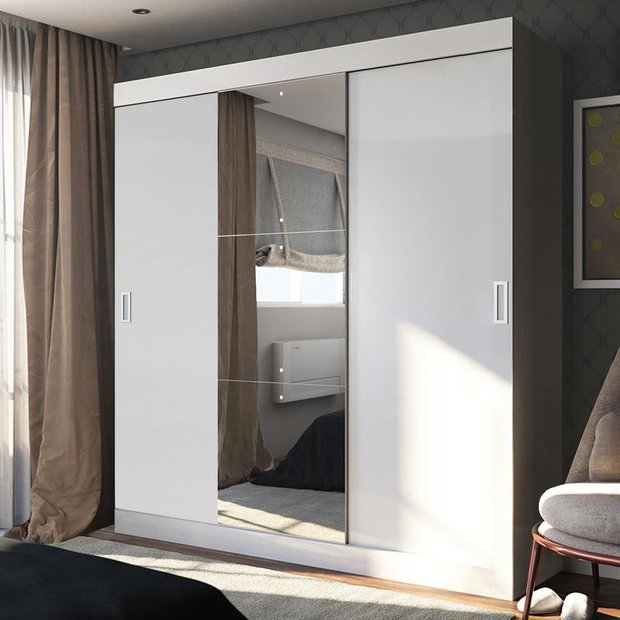 O(a) Guarda-Roupa Casal 3 Portas de Correr 100% Mdf Emp com Espelho Branco - Pnr Móveis é produzido em 100% MDF na escala de brilho Semi-Fosco, e possui um grau de dificuldade de montagem: Difícil.