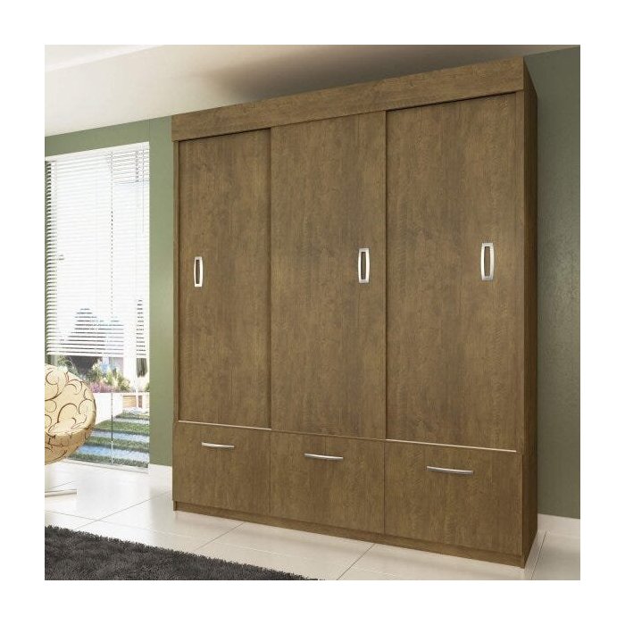 Guarda-Roupa Casal 3 Portas de Correr 2 Gavetas Natal Mapi Móveis
