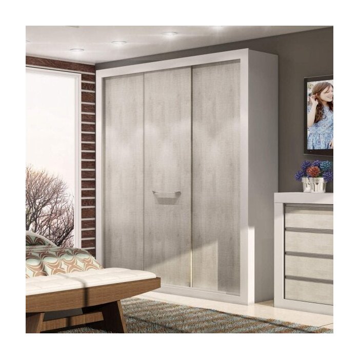 Guarda-Roupa Casal 3 Portas de Correr 4 Gavetas News Branco/Fresno